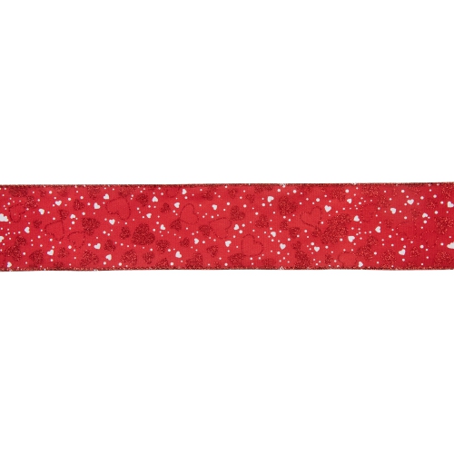 Red and White Hearts Valentine's Day Wired Craft Ribbon 2.5" x 10 Yards
