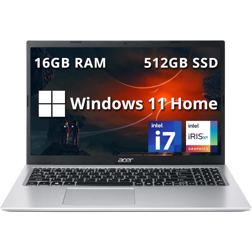 Refurbished (Excellent) - acer Aspire 3 15.6" FHD Laptop, Intel i7-1165G7, 512GB PCIe SSD, 16GB RAM, Intel Iris Xe Graphics, Num Pad, Wi-Fi 6, Webcam, Windows 11 Home, Silver