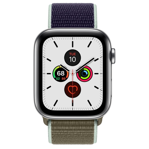 Refurbished (Excellent) - Apple Watch Series 5 (GPS + Cellular) 40mm - Silver Stainless Steel Case with Khaki Sport Band - Certified Refurbished