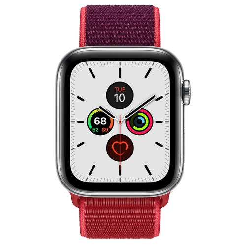 Refurbished (Excellent) - Apple Watch Series 5 (GPS + Cellular) 40mm - Silver Stainless Steel Case with Red Sport Band - Certified Refurbished