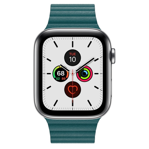 Refurbished (Excellent) - Apple Watch Series 5 (GPS + Cellular) 44mm - Silver Stainless Steel Case with Peacock Leather Band - Certified Refurbished