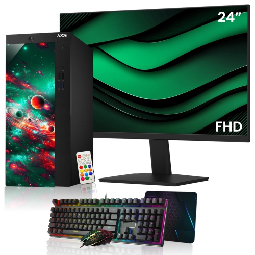 Refurbished (Excellent) - AXOII Custom RGB Computer PC - 24" Inch Monitor, Intel Core i5 Processor up to 4.1GHz, 16GB DDR4 RAM, 512GB NVMe SSD, Wi-Fi, Windows 11 Pro