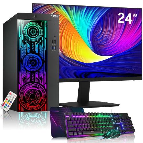 Refurbished (Excellent) - AXOII Custom RGB Computer PC - 24" Inch Monitor, Intel Core i5 Processor up to 4.1GHz, 16GB DDR4 RAM, 512GB NVMe SSD, Wi-Fi, Windows 11 Pro