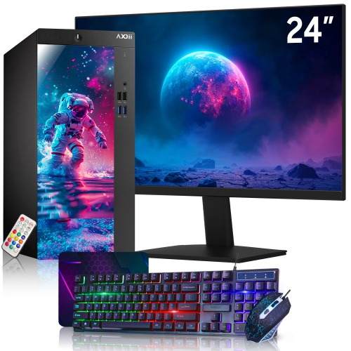 Refurbished (Excellent) - AXOII Custom RGB Computer PC - 24" Inch Monitor, Intel Core i5 Processor up to 4.1GHz, 16GB DDR4 RAM, 512GB NVMe SSD, Wi-Fi, Windows 11 Pro