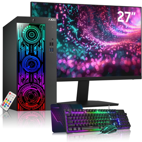 Refurbished (Excellent) - AXOII Custom RGB Computer PC - 27" Inch Monitor, Intel Core i5 Processor up to 4.1GHz, 16GB DDR4 RAM, 512GB NVMe SSD, Wi-Fi, Windows 11 Pro