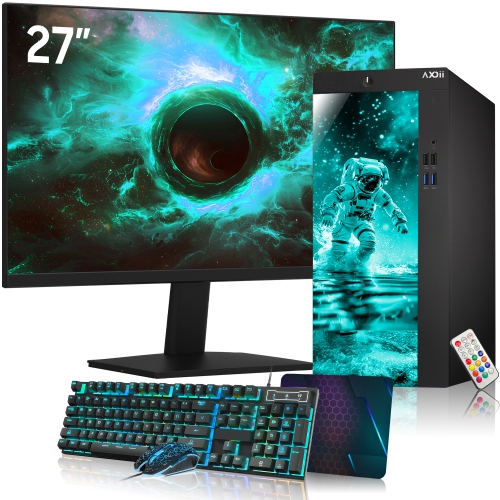 Refurbished (Excellent) - AXOII Custom RGB Computer PC - 27" Inch Monitor, Intel Core i5 Processor up to 4.1GHz, 16GB DDR4 RAM, 512GB NVMe SSD, Wi-Fi, Windows 11 Pro
