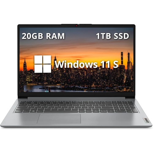 Refurbished (Excellent) - Lenovo IdeaPad 1 15.6" HD Laptop, Intel Pentium Silver N6000, 1TB SSD, 20GB RAM, Intel UHD Graphics, Num Pad, Webcam, Win 11 S, Gray