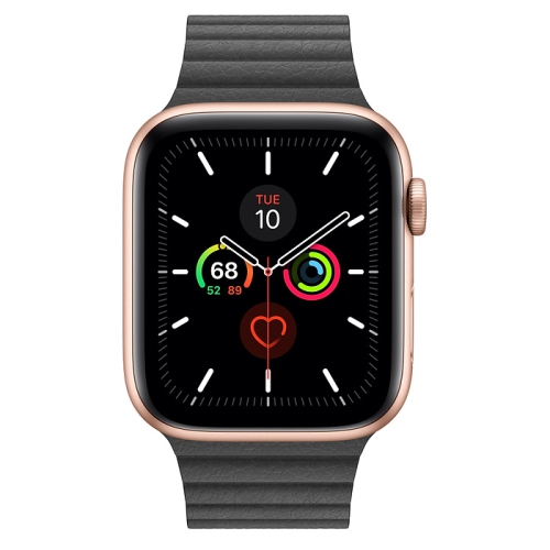 Refurbished (Good) - Apple Watch Series 5 (GPS + Cellular) 44mm - Gold Stainless Steel Case with Black Leather Band