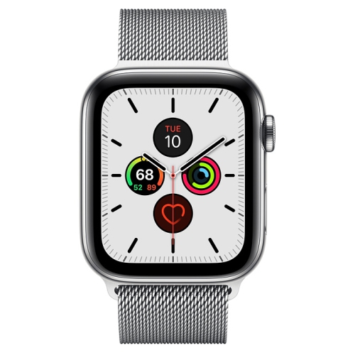 Refurbished (Good) - Apple Watch Series 5 (GPS + Cellular) 44mm - Silver Stainless Steel Case with Silver Milanese Loop Band
