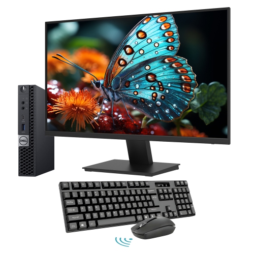 Refurbished (Good) - DELL OptiPlex 7060 Tiny/Mini Desktop Windows 11 Pro PC, New 24inch FHD Monitor | intel i5 Hexa Core 8500T | 32GB DDR4 RAM | 256GB SSD | WIFI