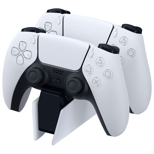 Charge up to two DualSense or DualSense Edge wireless controllers (each sold separately) at the same time with the PlayStation 5 DualSense wireless controller charging station. With the charging station's click-in design, you can dock your controllers quickly and easily. They'll charge as quickly as when they're connected to your PS5 console, so you can free up USB ports without sacrificing performance.
