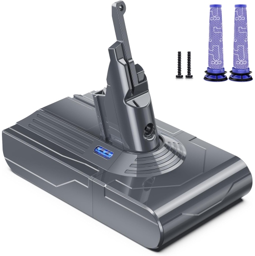 Replacement Battery for Dyson V8 – 21.6V 6500mAh Li-ion, Compatible with SV10, V8 Animal, Absolute, Fluffy + 2 Filters & Screws