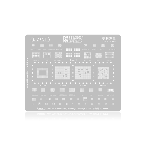 Replacement BGA Reballing Stencil U-QSD11 Compatible For Samsung Galaxy S23 (SM6450 SM8550 SM8650)