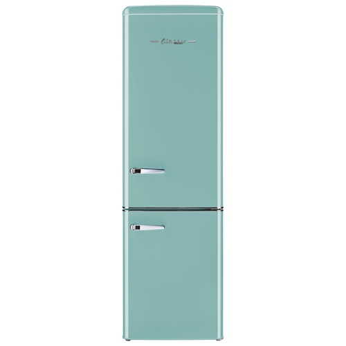 Give your kitchen a pop of mid-century style with the addition of this Retro By Unique bottom-freezer refrigerator. Its narrow design fits effortlessly into small spaces while the 9-cu.ft. capacity provides plenty of room for your fresh and frozen favourites. It's equipped with drawers and adjustable shelves to keep things organised.