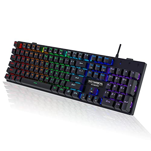 RGB Mechanical Gaming Keyboard 104 Keys, Blue Switch, LED Backlit, Anti-Ghosting PC Mac Xbox