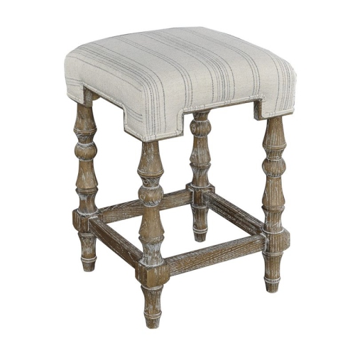 Add rustic style and design to your kitchen or high top table with the backless counter height stool. An eye-catching geometric shaped seat sits atop decorative washed wood legs. The neutral colorscape allows the stool to easily transition into a variety of decor schemes. Sturdy footrests add stability and comfort.