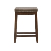 This Counter Stool will add stylish seating to any counter or high top table in your home. The sturdy wood frame has a rustic finish accented by a gray linen weave polyester upholstered seat. Brushed silver nailhead trim adds an eye catching detail. 26" Seat Height. 275 pound weight limit.Features : Material: Rubberwood, CA fire, 100% polyester fabric, metalFinish: Rustic dark brown, grayBrushed silver nailheadsPerfec...