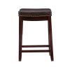 This Brown Counter Stool will add stylish seating to any counter or high top table in your home. The sturdy wood frame has a dark brown finish accented by a brown faux leather upholstered seat. Antique Brass nailhead trim and double needle accent stitching adds durability to the padded top for an eye catching detail. 26" Seat Height. 275 pound weight limit.Features : Material: Rubberwood, mahogany wood, CA fire foam, metal, fabric, PU faux leat...