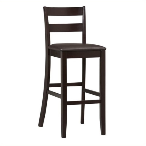 With traditional styling, this Riverbay Furniture Bar Stool will enhance your dining area with its casual charm. The rich Merlot finish, dark brown wipe clean faux leather padded seat, and 30-inch high seat give this bar stool a timeless allure. Solid construction and quality craftsmanship have made this bar stool both sturdy and attractive. This bar stool fits beautifully into a casual or formal decor. 275 pound weight limit.Features : Materia...