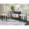 Add color and seating to your kitchen or dining space with the counter height stool. Crafted from sturdy hardwood, the stool features bottom footrails for added stability and durability. The black finish is accented by a dove gray upholstered seat and back. Shiny silver nailheads add extra interest.