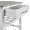 Add much needed storage and prep space to your kitchen with this lovely kitchen cart. The attached wheels make this piece easily mobile, while the wire basket and drawer provide extra storage that every cook needs. The clean white finish and durable granite counter top will brighten up your kitchen and give you the space you need for preparation to entertain guests. . .Features :Crafted from Pine Wood, Granite ...