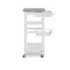 Expand your kitchen workspace with the kitchen cart. A single pull out storage drawer, wire basket, wine bottle storage rack and single shelf, provide ample storage space for all of your kitchen essentials. Durable castors make for easy mobility throughout your space and lock for safety. The neutral white finish easily blends with any existing kitchen decor. Ideal for small spaces. .Features :Crafted from Pine, Stainless Steel and ...