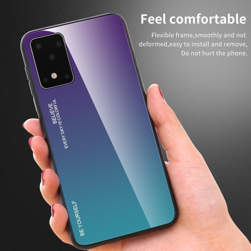 RIVIERA Scratch Resistant Gradient Color Phone Case Anti-fall Tempered Glass Case for Samsung Galaxy S20 FE -Purple and Green (FREE SHIPPING)