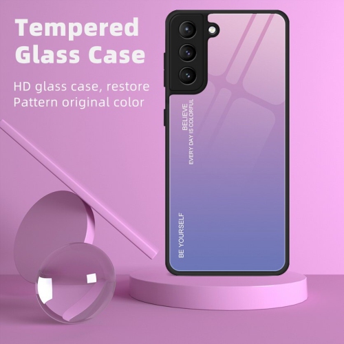 RIVIERA Scratch Resistant Gradient Color Phone Case Anti-fall Tempered Glass Case for Samsung Galaxy S21 PLUS -Pink and Purple (FREE SHIPPING)