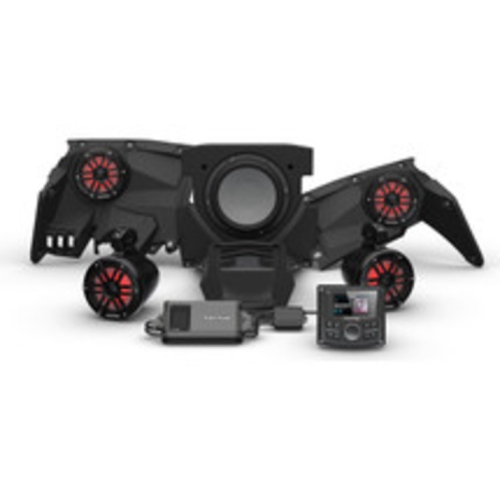 This Rockford Fosgate audio kit is Color Optix enabled by featuring our Color Optix controller to allow color adjustment of speakers and rear moto-cans. Audio system is 100% Element Ready solution and provides ability to take your off-road vehicle into any environment. Amplifier employs Rockford Fosgate preset for easy set up allowing maximum performance without any tuning.