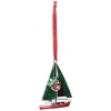 Features a silver plated enamel finish. Nautical red and silver sailboat design. Green glittery sails; life preserver accented with holly