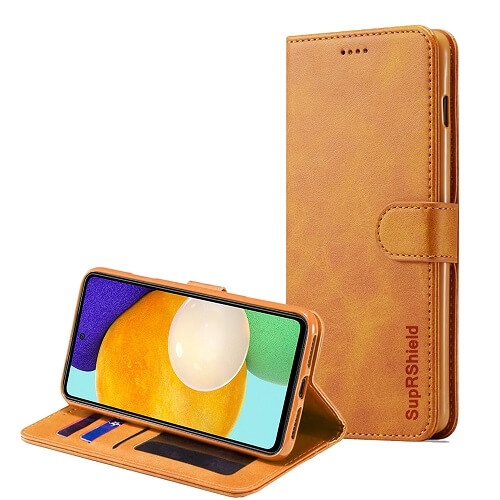 Samsung Galaxy A52 Case Brown Genuine SupRShield Wallet Leather Flip Stand Magnetic Case Cover.