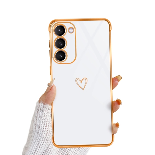 Samsung Galaxy S23 Case for Girls Women, Cute Heart Simple Pattern Case Plating Gold Edge Flexible Silicone Shockproof Protective Bumper Cover for Samsung Galaxy S23-White