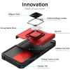 Samsung S23 Case with Sliding Camera Cover Heavy Duty Protective Galaxy S23 Case with Card Holder Magnetic Built-in Kickstand Phone Case for Samsung S23(Red)