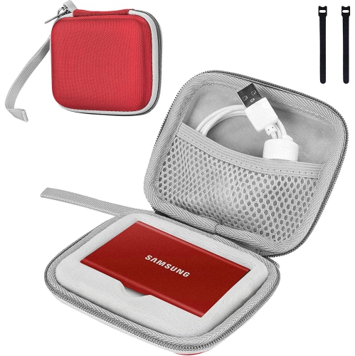 π Compatible with Samsung T7 Portable SSD / T7 Touch Portable SSD 500GB 1TB 2TB SSD USB 3.2 External Solid State Drives π Premium hard EVA exterior and shock absorbing soft lining interior, offers double protection against scratches, dents, bumps, and drops π Designed with an interior mesh pocket to store cable and other small accessories π Smooth zipper design allows easy access to your device and accessories; Hand strap for easy carrying around π Comes with 2 fastening cable ties, perfect for organizing cables, wires, and cords