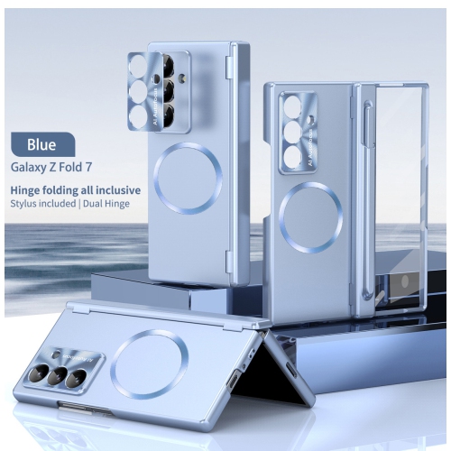 Samsung Zfold7 phone case with magnetic charging hinge, foldable cover, pen slot, and full-coverage for fold7 (Far Peak Blue Magnetic)