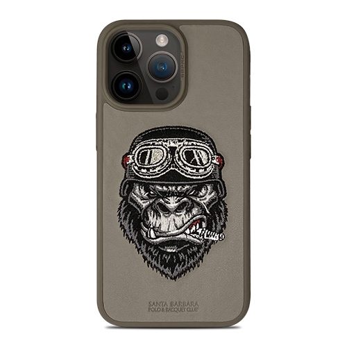 Santa Barbara Patti Series Chimpanzee Embroidered Leather Case for iPhone 15 Pro