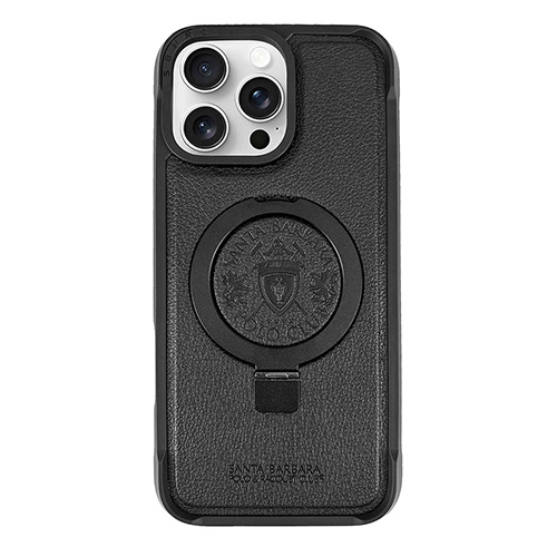 Santa Barbara Primo Series Black Magnetic Ring Kickstand Leather Case for iPhone 16 Pro