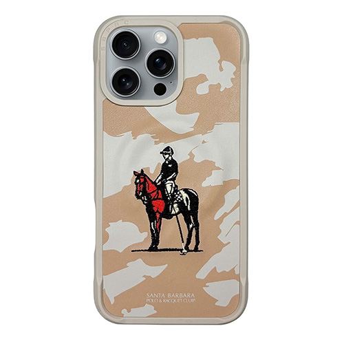 Santa Barbara Virgil Series Beige Embroidered Leather Magsafe Case for iPhone 16 Pro
