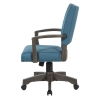 Santina Bankers Chair with Antique Gray Finish and Blue FabricAdd classic elegance to your home office with our deluxe upholstered Banker’s Chair. Nailhead trim, solid wood armrests and cushioned back with attractive double stitch French seam adds tailored details. Firm, yet yielding foam seat reduces pressure on large muscle groups. Adjustable height brings you to exactly the correct level and tilt tension will keep the recline just where you prefer. Our durable 5-s...