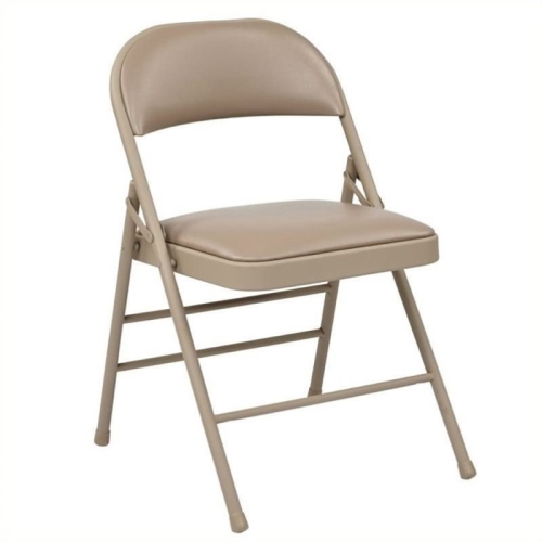 Folding Chair with Vinyl Seat and Back (Tan) (4-Pack ). Convenient for outdoors or an extra seat for a guest, this folding chair comes in a multiple colour selection of your choice. Also, the is easy to store away until the next time you need it.Features:Vinyl Padded Seat and BackFolding For Easy StorageTan Finish FrameSpecifications:Overall Product Dimensions: 30.25" H x 18.75" W x 18.75" D<...