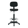 Sculptured Black Seat and Back Drafting Chair with Adjustable Foot RingThis drafting chair has a stylish look with a modern chrome finish base to match. It is counter height and has a height-adjustable footrest and one-touch pneumatic seat height adjustment. It also has back height and seat depth adjustment with heavy duty nylon base.Features : Pneumatic Height AdjustmentFabric Seat and BackHeight Adjustment 23" to 33" overa...