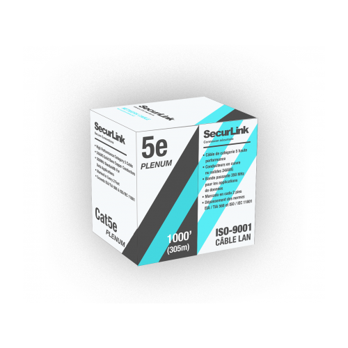 High Quality SECURLINK CAT5E PLENUM CMP 24AWG SOLID PURE COPPER, FT6 , 350MHZ, 1000FT, BLUE