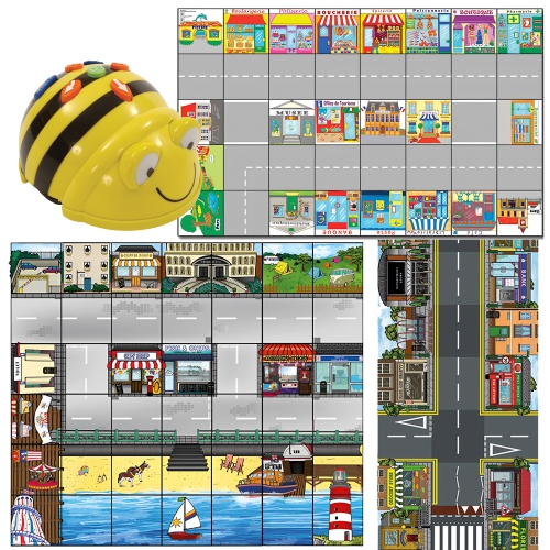 See & Say Bee-Bot programmable Floor Robot Learning Bundle Kit with 3 Activity Mats - Seaside Mat, French Town Mat, and Busy Street Mat - Coding Toy Robot for Kids