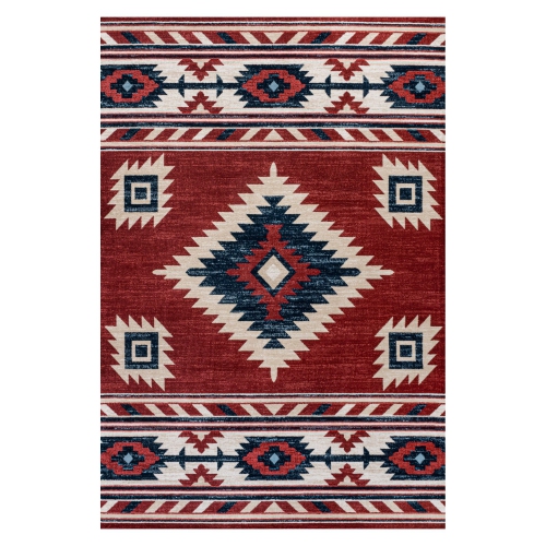 Inspired by ancient Southwestern designs, our geometric rug features a central medallion and a modern, bold color palette. Add graphic punch to your living room, dining room, entry, or bedroom with our busy, family-friendly design.