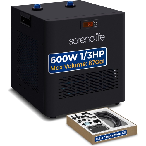 SereneLife Cold Plunge Chiller System - 1/3 HP 600w, 79 Gal Max Volume Ice Bath Water Chiller with Quiet Design Cooling Refrigeration Compressor