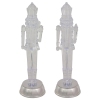 Battery operated Icy Crystal Christmas nutcrackers tabletop decoration. Color changing LED lights are red; green and blue. Designed holding either a sceptor and Christmas tree