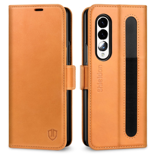 SHIELDON Galaxy Z Fold 3 Case, Galaxy Z Fold 3 Wallet Case, Genuine Leather Flip Magnetic Book Design with S Pen Holder, Cre