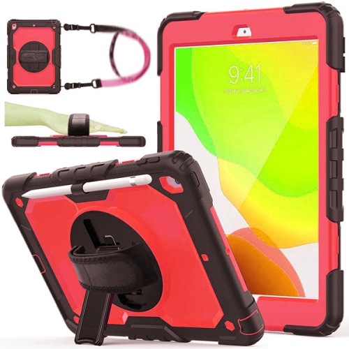 Shockproof Heavy Duty Defender Case Kickstand Cover with Shoulder & Hand Strap for iPad 10.2" 7th 8th 9th Gen., Red