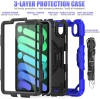 Shockproof Heavy Duty Defender Case Kickstand Cover with Shoulder & Hand Strap for iPad Mini 6 6th Gen. 2021 (8.3"), Blue