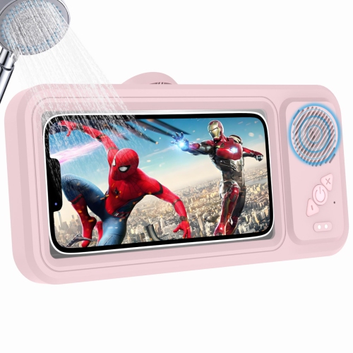 Shower Phone Holder with Wireless Bluetooth Speaker,Waterproof 480 Rotation Viewable Shower Phone Stand Case Mount Speakers for Bathroom